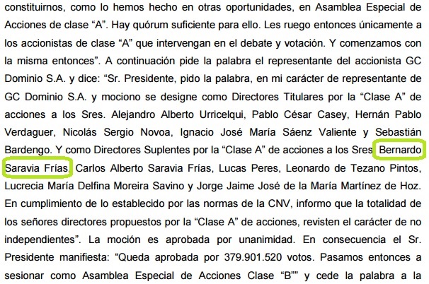 Y ahora si, para terminar, un dato no menor: en la Junta de Accionistas de Clarín, celebrada el 30 de junio de 2014, según se informó a la Comisión Nacional de Valores, fíjense quien es nombrado como Director Suplente en representación de los accionistas de Clase “A” del grupo