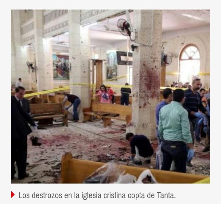En un primer ataque contra el templo de San Jorge, en la ciudad de Tanta, 120 kilómetros al norte de El Cairo, 22 fieles perdieron la vida y 41 resultaron heridos, cuando participaban en una misa con motivo de la celebración del Domingo de Ramos, que marca el comienzo de la Semana Santa. Poco después, otro atentado contra la catedral de San Marcos, en la ciudad costera de Alejandría, causó la muerte a otras once personas e hirió a 36, indicó el ministerio de Sanidad egipcio en un comunicado.