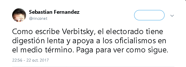 Con festejos, que no contemplaron duelos por Santiago Maldonado ni delicadezas con los que padecen el inclemente ajuste, el día después del sufragio se eternizó en un vale todo: más censura, más provocaciones, más endeudamiento. Tasas más elevadas, menos estado de derecho. Las segundas marcas de Cambiemos, humilladas en las urnas, solo atinaron a quitarse la falaz etiqueta de opositoras para mendigar, apretujadas, que se les habilite la rapiña de algún beneficio en el sector de la grilla reservado a la obsecuencia. Y, claro, que se las excluya por siempre jamás del carpetazo.