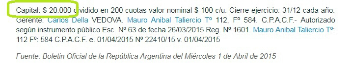 Recién un mes mas tarde, en el boletín oficial del 30 de abril, dicho capital será ampliado a $500.000, y finalmente, en noviembre de 2016, se incorpora un nuevo socio a la firma, Juan Manuel Vilariño.