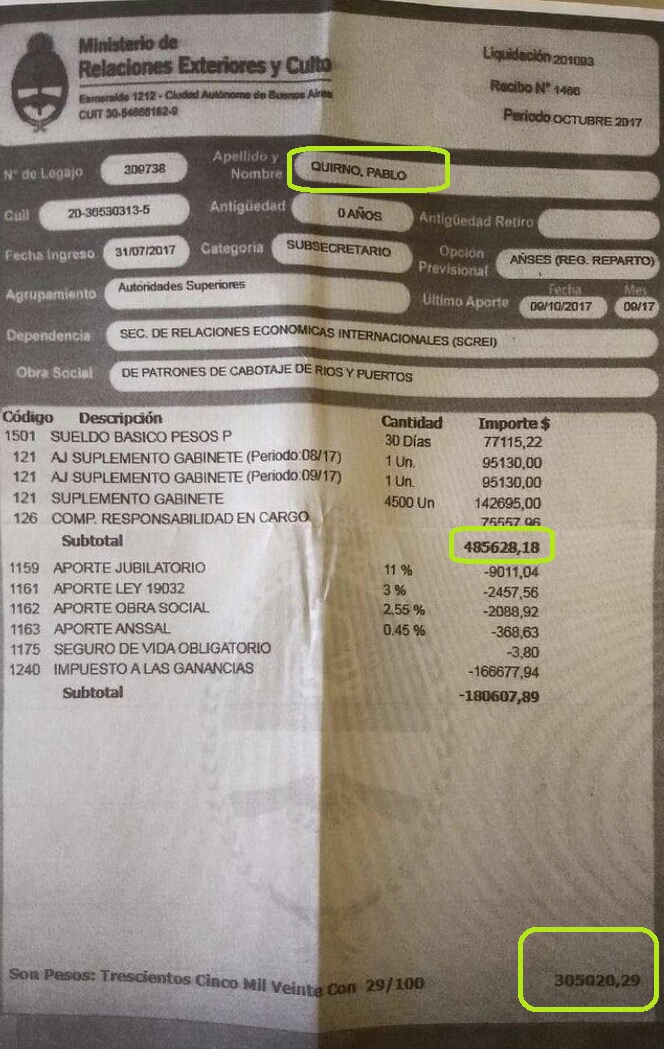 Pablo Quirno, de tan solo 26 años, es el hijo de Pablo Quirno Magrane, Jefe de Gabinete de Asesores en el Ministerio de Finanzas y ya había obtenido el rango de Subsecretario en julio del año pasado, con lo cual obtiene un sueldo en mano superior a los 300.000 pesos. En una carrera meteórica, y sin casi experiencia laboral previa, el joven ingresó a trabajar en el Estado en marzo de 2016, como asesor de Inversión Extranjera para ser nombrado Subsecretario poco más de un año después.