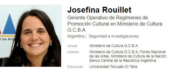 María Josefina Roulliet, esposa del Presidente del Banco Central Federico Sturzenegger fue nombrada como Gerenta Operativa de Regímenes de Promoción Cultural.