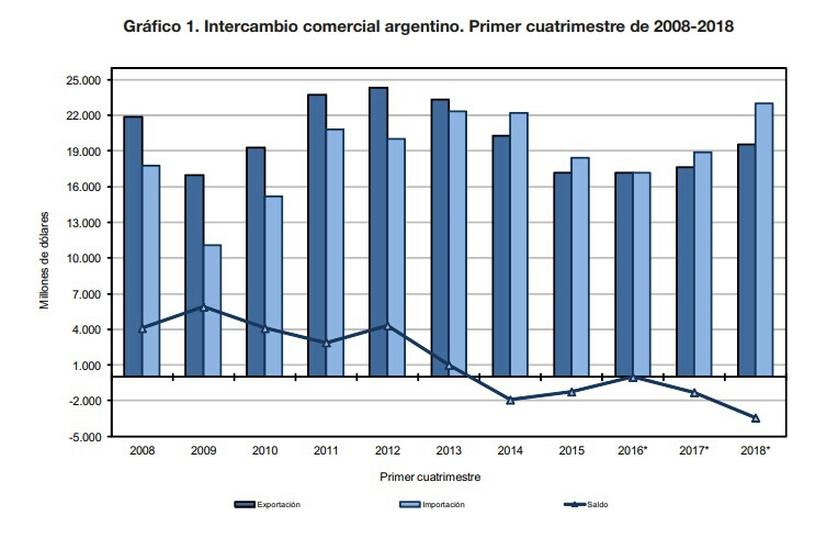 “En abril de 2018 las exportaciones alcanzaron 5.164 millones de dólares y las importaciones 6.102 millones de dólares. El déficit en la balanza comercial fue de 938 millones de dólares”. Así comienza el informe del INDEC con los números del Intercambio Comercial Argentino. En un nuevo capítulo del permanente “lo peor ya pasó” los números vuelven a dar en rojo.