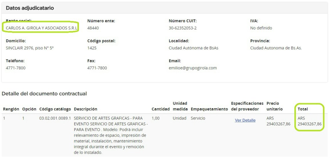 Carlos Girola y Asociados también realiza negocios en la Ciudad de Buenos Aires. A través de la Orden de Compra 9982-5260-OC18 se le adjudicó en el pasado mes de mayo un servicio de artes gráficas destinado a los Juegos Olímpicos de la Juventud, por la módica suma de $ 29.403.267,86