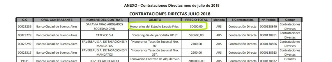 Dentro de la costumbre de favores cruzados a los que nos tiene acostumbrados el gobierno de Cambiemos, sale a la luz ahora que el Banco de la Ciudad de Buenos Aires contrata directamente y le abona un canon mensual al Estudio Jurídico de la familia del Procurador del Tesoro de la Nación, Bernardo Saravia Frías.