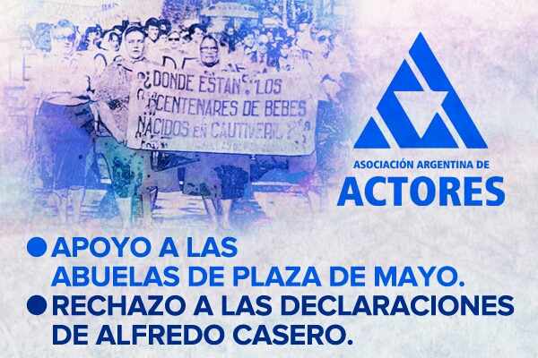 Las inadmisibles declaraciones públicas de nuestro afiliado Alfredo Casero poniendo en duda la honorabilidad de nuestras Abuelas de Plaza de Mayo, nos avergüenza y por lo tanto nos obliga, en nombre de nuestro gremio, a pedirles perdón a ellas y a la sociedad, por semejante falta de respeto.