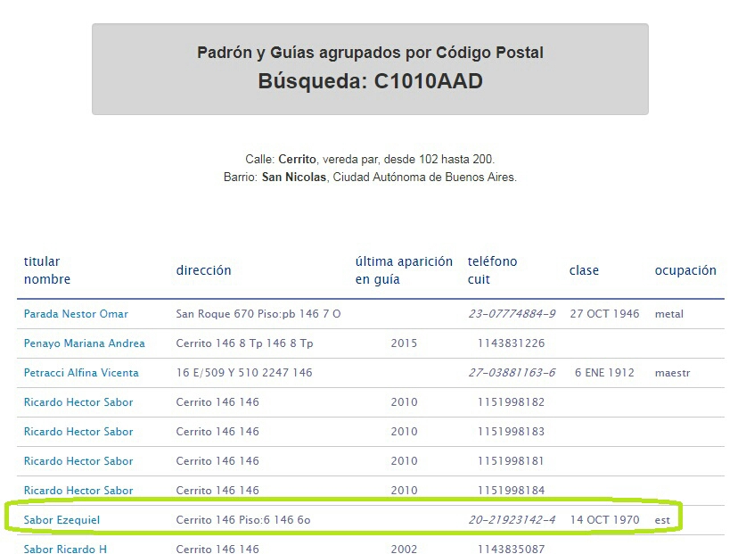Justamente dicho domicilio es el que tiene declarado en la Argentina el actual embajador en México, Ezequiel Sabor, tal cual consta en la guía.