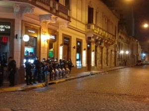 Este operativo fue generado por una denuncia por ruidos molestos organizada por vecines del barrio, aparentemente del pasaje Giuffra, y se caracterizó por la imposibilidad de dialogar, ya que estaba conformado por unos 50 agentes portando escudos, notablemente dispuestes a reprimir si no se acataba la prohibición de avanzar.