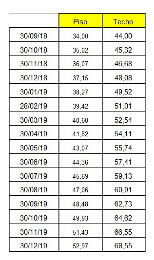 Como puede apreciarse, para diciembre de 2019 (cuando finalice el mandato del actual presidente) la flotación “estaría” entre los 53 y los 68 pesos