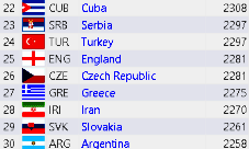 Hasta el momento las jugadoras argentinas ocupan el puesto número 26 en la la tabla de posiciones y las de Cuba el 21. La clasificación inicial había ubicado a las caribeñas en el lugar 22 y a las rioplatenses en el 30 (ver diagrama de la izquierda). De acuerdo con estas referencias, los equipos que medirán fuerzas dentro de pocas horas superaron las expectativas previas basadas en el rating ELO. Un certamen de semejante trascendencia representa una gran oportunidad para el ajedrez femenino de latinoamérica, generalmente infravalorado en comparación con su real nivel y fuerza internacional.