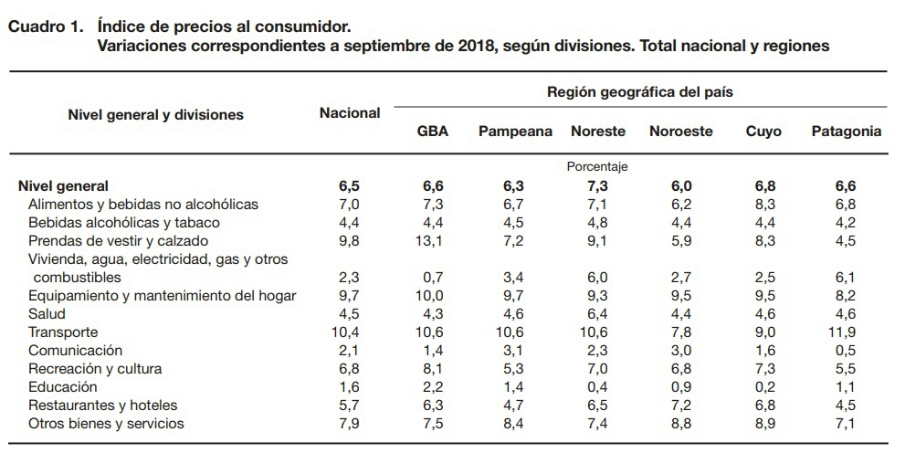 Ei INDEC señaló que el nivel general del Índice de precios al consumidor (IPC) representativo del total de hogares del país registró en septiembre una variación de 6,5% con relación al mes anterior, cercana al 7% que indicaban los consultores privados.