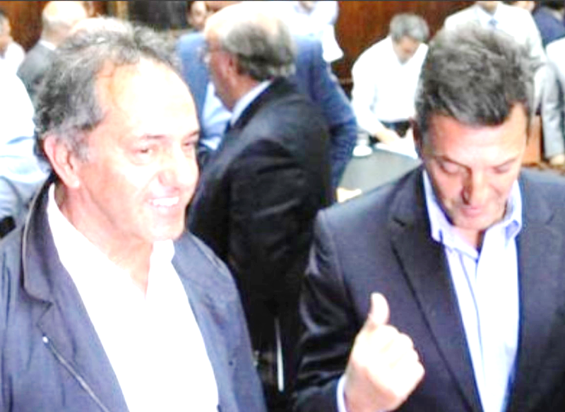 Daniel Scioli y Sergio Massa, tras dar el presente al dueño de casa, se florearon en el escenario y compartieron palco de honor con el riojano Sergio Casas, la catamarqueña Lucía Corpacci, el santiagueño José Neder y diversas personalidades de menor brillo en el firmamento del colaboracionismo político.