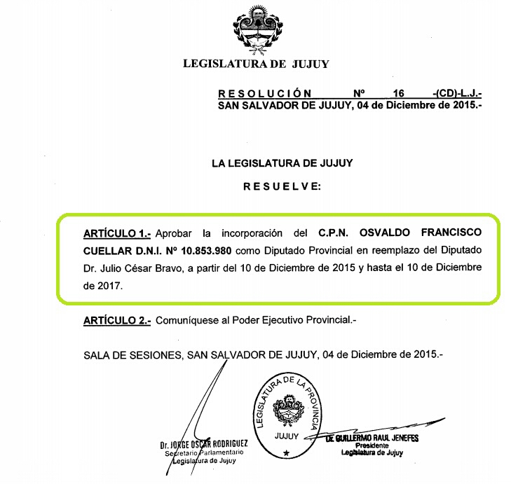 Su cuñado, Osvaldo Francisco Cuellar(esposo de María del Carmen Morales, la hermana de Gerardo, Freddy y Walter y que supo integrar la planta del poder legislativo), renovó su banca de diputado provincial ocupando el octavo lugar en las elecciones legislativas del 2017 en la lista del “Frente Cambia Jujuy”. En la “Roja y Blanca”, la agrupación radical que encabeza Gerardo Morales (única lista) que triunfo en las internas del partido, en el comité provincia, Osvaldo Francisco Cuellar fue elegido como Pro-Tesorero, secundado al Tesorero, su también cuñado Héctor Freddy Morales.