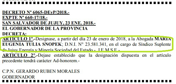 La de Gonzalo Agustín Morales, María Florencia Aguilar Cruells, fue designada en el cargo de Secretario de Primera Instancia en el Tribunal de Justicia jujeño el 24 de mayo de 2017.