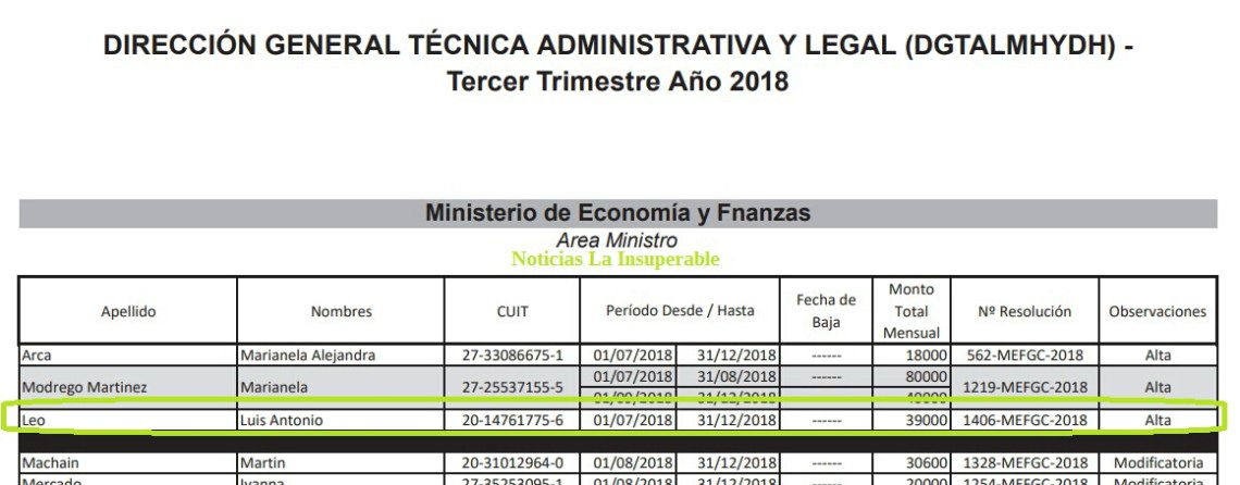 Luis Antonio Leo es el Director General de “Leo & Asociados”, además de ser el Socio Gerente de Media Office S.R.L., la empresa que recibió millones en contrataciones desde el BAPRO, y docente en la UADE. Pero como parece que cuenta con algo de tiempo libre, el pasado 1º de julio (pero recién publicado en el Boletín oficial hace unos días) fue contratado dentro de la Dirección General Técnica, Administrativa y Legal del Ministerio de Economía y Finanzas de la Ciudad de Buenos Aires por $39.000 mensuales, convirtiéndose así en empleado y proveedor del Estado.