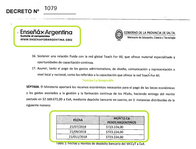 Los contratos con el Estado y la Fundacion “Enseña x Argentina”, fundada por Ghillone, continúan aún en el presente, aunque él “ya no ponga” la firma. Por ejemplo, en la provincia de Salta, hace unos meses, se dio a conocer el Decreto 1079 por el cual el gobierno de Juan Manuel Urtubey aportaba $ 2.169.672,- para becas y “gastos asociados a la gestión”.