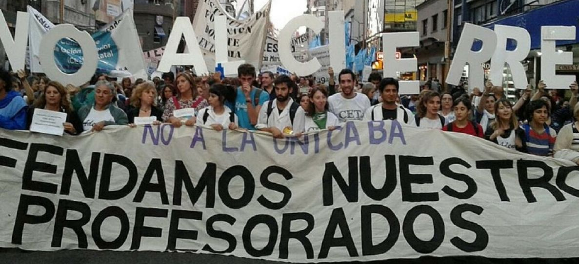 Puntadas finales y tiros de gracia son también prerrogativas de Cambiemos. Unicaba no es resultado exclusivo de la perversa creatividad del macrismo puesta al servicio de hacer desaparecer la auténtica formación docente. El proyecto educativo neoliberal invirtió mucho tiempo e innumerables recursos para atacar el sistema educativo estatal y también para debilitar a los prestigiosos institutos del profesorado.