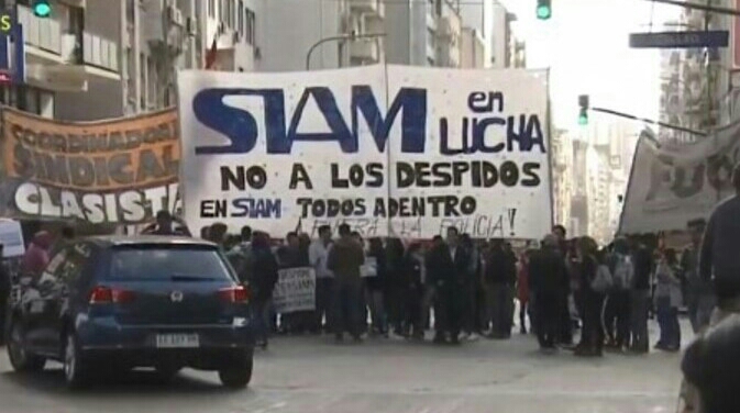 Ante los crecientes despidos en SIAM, que ya llegan a las 165 personas, los trabajadores llevan a delante una nueva medida de fuerza, esta vez cortando la intersección de Corrientes y Callao.