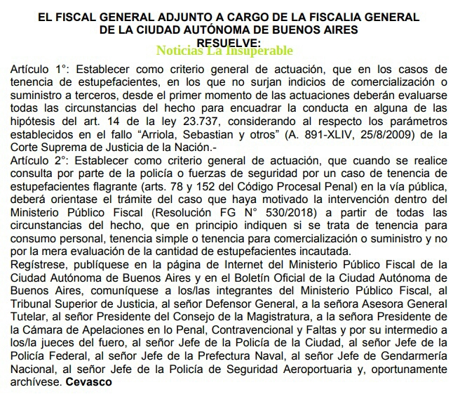En la Ciudad de Buenos Aires un polémico fiscal determinó en una Resolución del Ministerio Público que la cantidad de droga incautada como parámetro para determinar que la misma es para consumo personal es algo insuficiente o engañoso.