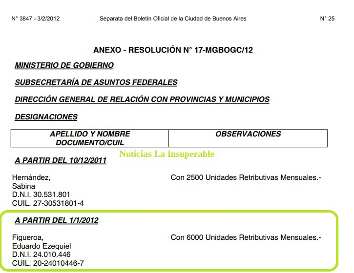 Pero, si bien se intenta despegar al chofer de Cambiemos, Eduardo Ezequiel Figueroa fue funcionario del gobierno de la Ciudad de Buenos Aires cuando Macri era Jefe de Gobierno. El 1º de enero de 2012 fue designado dentro de la Dirección General de Relaciones con Provincias y Municipios en la Subsecretaría de Asuntos Federales del Ministerio de Gobierno de la Ciudad a través de la RESOLUCIÓN N° 17-MGBOGC/12.