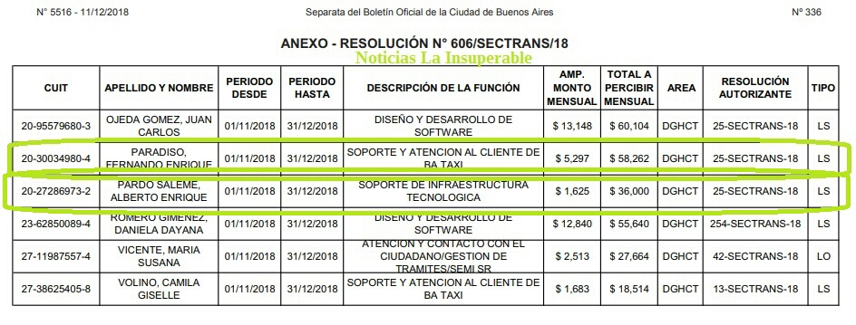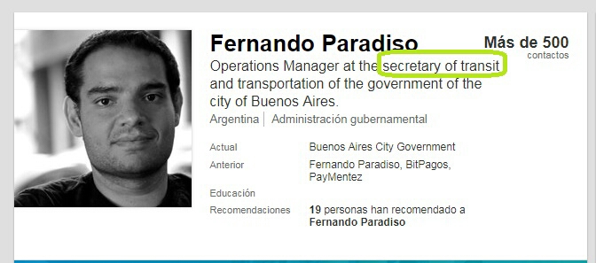 Curiosamente, su socio, Fernando Claudio Rodríguez Nieto, es también personal contratado de la Secretaría de Transporte de la Ciudad, dentro del área de soporte de Infraestructura Tecnológica.