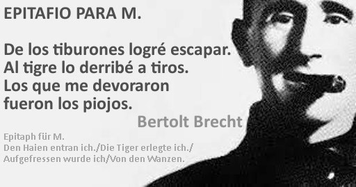 Cadencias y ritmos singulares atraviesan toda la obra de Brecht. El autor teatral consagrado jamás renunciaba a la poesía. Tal vez la más conocida de sus canciones, Die Moritat von Mackie Messer, de La ópera de dos centavos, podría evocar en los amantes del teatro momentos que recrearon más tarde músicos de primer nivel en sus interpretaciones de Mack The Knife.