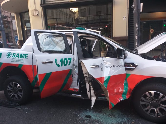 En un accidente de tránsito ocurrido hace instantes en la intersección de Sarmiento y la Av. Callao, en pleno centro porteño, un auto embistió a una ambulancia del SAME donde se hallaba el titular del PAMI, el doctor Alberto Crescenti, quien sufrió una luxación en su hombro derecho.