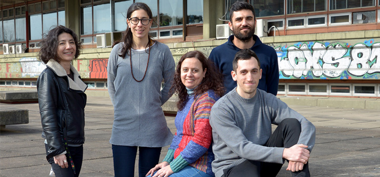 De izquierda a derecha: Verónica Loetti, María Sol De Majo, Sylvia Fischer, Pedro Montini (adelante), Cristian Di Battista (atrás). Todos ellos realizaron el estudio, en el que el investigador Raúl Campos también participó.