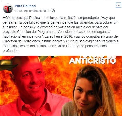 Delfina comenzó como asesora junior de Niolás Ducoté en Pilar allá por el 2013. Ascendió rápido. Sin título universitario que la avale según su perfil, para 2016 ya era Directora de Relaciones Institucionales y Cultos de Pilar. Antes de asumir en su cargo se encontró en un pasillo con el entonces Secretario de Gobierno Diego Ranieli, le contó la novedad de su designación y con mucho orgullo le adelantó que iba a salir a la calle a pedir habilitaciones para los comedores. Todo un signo de sensibilidad.