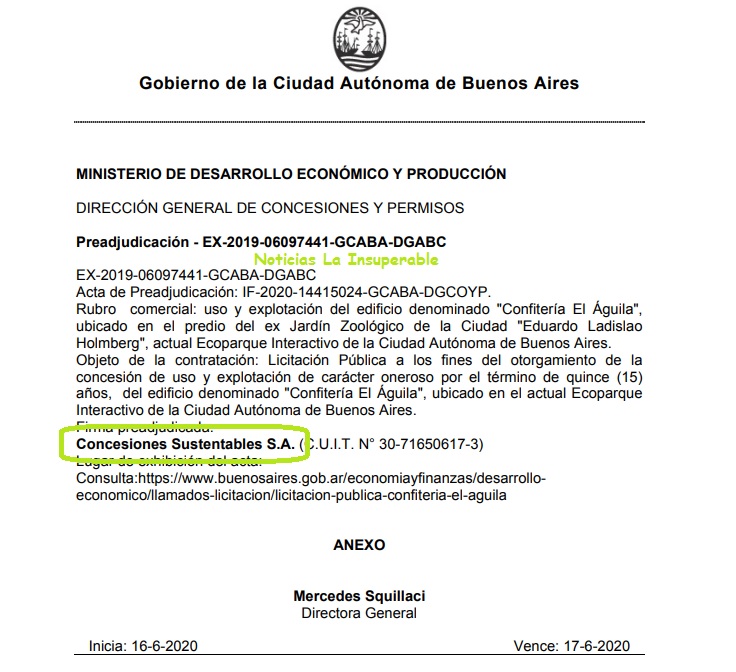 Como parte del desguace del ex Zoo porteño, vendido como un fin ecologista pero que solo apunta a un negocio de privados, el gobierno de Horacio Rodríguez Larreta acaba de preadjudicar, por 15 años, el uso y explotación de carácter oneroso del edificio denominado «Confitería El Águila», ubicado en el actual Ecoparque Interactivo de la Ciudad Autónoma de Buenos Aires.