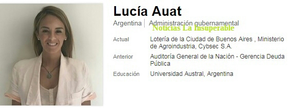Lucía es una abogada recibida en 2011 en la Universidad del Norte “Santo Tomás de Aquino”. Ingresó al Estado con el macrismo, en 2016, en el ministerio de Agroindustria., cuando a través de la Decisión Administrativa 526/2016 Marcos Peña y Ricardo Buryaile la designaron “por el término de CIENTO OCHENTA (180) días hábiles, en UN (1) cargo vacante Nivel B, Grado 0, Función Ejecutiva III, de titular de la Supervisión de Auditoría Presupuestaria dependiente de la Auditoría Adjunta Operacional de la UNIDAD DE AUDITORÍA INTERNA del MINISTERIO DE AGROINDUSTRIA”.