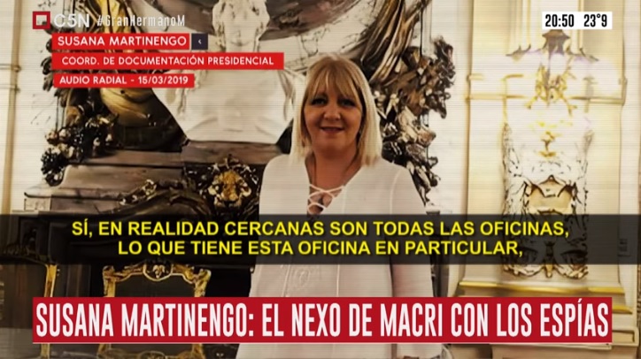 “La ex funcionaria de máxima confianza de Mauricio Macri está cada vez más en la mira, por lo que fue convocada para este viernes por la Comisión Bicameral de Seguimiento de los Servicios de Inteligencia”, indica Sofía Caram en un artículo para Pagina 12 publicado hace unas horas.