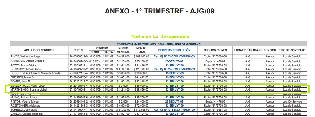 Si fue funcionaria cuando Macri estaba en la Ciudad y lo acompaña, al menos, desde el 2008. Para el primer trimestre de 2009 consta con un contrato part-time como Asesora en la Jefatura de Gobierno.