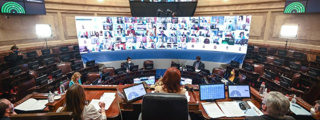 La votación contó con el apoyo unánime del Frente de Todos y ante la ausencia de los interbloques de Juntos por el Cambio y Parlamentario Federal que se desconectaron de la discusión parlamentaria.