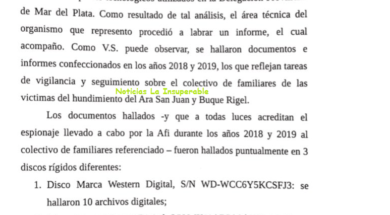 «Los informes, fechados entre enero y junio de 2018, muestran seguimientos sistemáticos y fotografías tomadas frente a la Base Naval de Mar del Plata o durante otras actividades realizadas, por ejemplo, en el Consejo Deliberante de esa ciudad o en el monumento al Gral. San Martín local, tanto de las columnas, como a referentes de los grupos de familiares«, explicó la AFI en un comunicado.