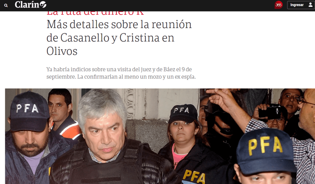La foto de este artículo corresponde a una “investigación periodística” (una de las tantas) publicada por el Diario Clarín el 5 de julio de 2016, escrita por el “periodista” Claudio Savoia, sobre los pormenores de una inexistente reunión entre el juez Casanello y la entonces presidenta Cristina Kirchner en la quinta de Olivos.