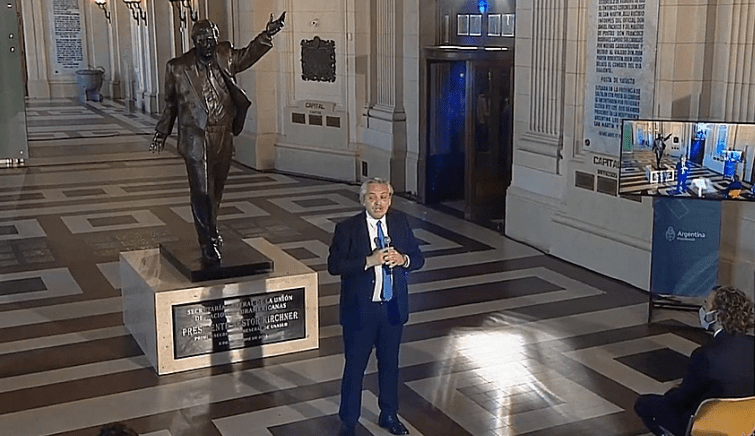 Luego, Fernández dijo: «Hoy estamos poniendo a Néstor en el lugar que merece. Cuando Ernesto Samper me contó que esta estatua había quedado en un depósito lo llamé a Julio Vitobello y le pregunté a Cristina dónde podíamos poner la estatua. Mi deber es terminar lo que empezó Néstor y siguió Cristina. Y así lo vamos a hacer. Vamos a poner de pie a la Argentina como me enseñó Néstor. Y créanme que cada vez que tengo que tomar una decisión me pregunto ¿qué haría Néstor?«, concluyó el Presidente visiblemente emocionado.