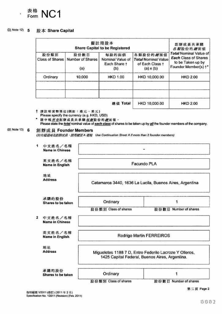También figura una misteriosa compañía radicada en Hong Kong: Rodfa Limited, que depositó U$S 134.975 el 14 de septiembre de 2012. Titulares de Rodfa son Facundo Pla y Rodrigo Martín Ferreiros, quien además de llevar adelante sus actividades financieras, en el momento del fallecimiento del fiscal, trabajaba para el Senado de la Nación en el Programa de Gestión de Calidad y Extensión Parlamentaria. Rodfa Limited fue creada el 16 de marzo de 2012 y disuelta el 8 de febrero de 2019.
