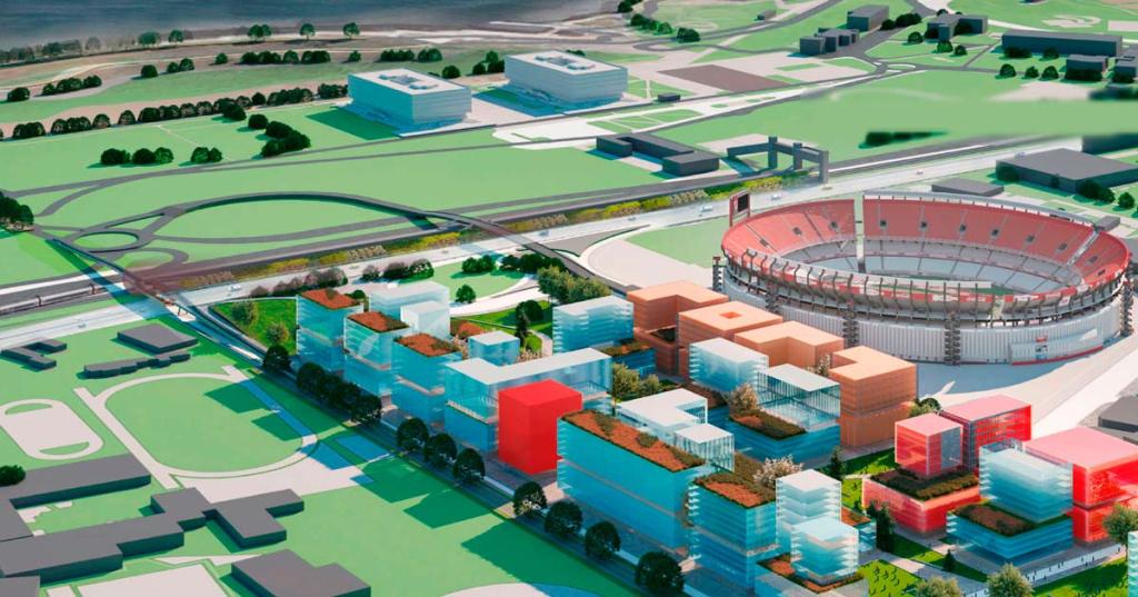El gigantesco predio, delimitado por las Av. Leopoldo Lugones, Av. Guillermo Udaondo y Av. Del Libertador se divide en tres lotes A, B y C. Siendo los lotes A y B privados y el lote C, donde se desarrollará el Parque de la Innovación. Se realizará también la apertura de las nuevas calles Ricchieri, Bavio, Campos Salles y sus correspondientes veredas. La nueva circulación vehicular se realizará bordeando el polígono por las avenidas Udaondo, Lugones, Campos Salles (que se abre como límite con el predio del CENARD) y la continuación de las calles Ernesto Bavio y Ricchieri.