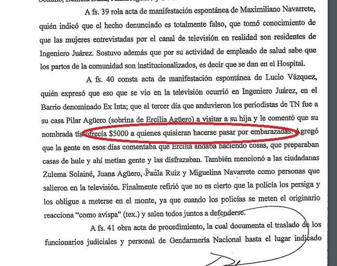 Luego del informe, los trabajadores de la salud y de la educación locales se indignaron por la situación debido a que desde hace años declaran trabajar para que todos los partos sean hospitalarios y que las costumbres de los pueblos originarios sean respetadas. Días más tarde, el ministro de Gobierno, Justicia, Seguridad y Trabajo, Jorge Abel González, denunció el supuesto atropello a los derechos humanos para que sea investigado. El Fiscal citó que detrás de la fake news operó un ex policía de Formosa que por medio de la presunta puntera Ercilia Agüero reclutaba a las falsas embarazadas a cambio de 5000 pesos. «Lucio Vazquez expresó que eso que se vio en la televisión ocurrió en Ingeniero Juárez, en el barrio denominado Ex Inta, que al tercer día que anduvieron los periodistas de TN fue a su casa Pilar Aguero (sobrina de Ercilia Aguero) a visitar a su hija y le comentó que la nombrada tía ofrecía 5000 pesos a quienes quisieran hacerse pasar por embarazadas«, detalló el informe del fiscal Gon.