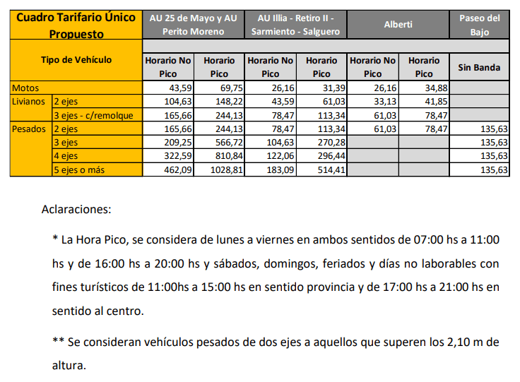 Un automóvil en hora pico (casi siempre) abonará ahora $ 148.22 en la 25 de Mayo y $ 61,03 en la Illia.