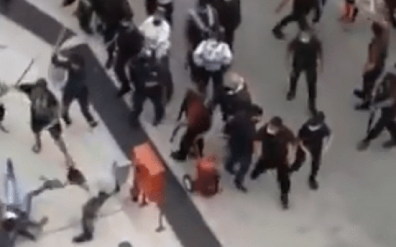 En los videos que circularon sobre los hechos, se puede ver a un grupo de personas protestando dentro del Ministerio, cuando en un momento se ve que llega por el costado un grupo de personas con palos y cadenas para sacar a los manifestantes.