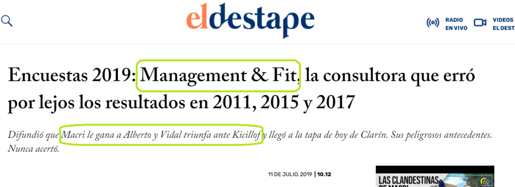 Poliarquía, es la consultora favorita del diario La Nación, al cual le realiza las encuestas desde las legislativas de 2005 y era aquella que indicaba las crecientes chances de Mauricio Macri de lograr la reelección en 2019.