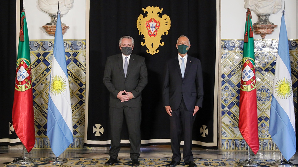 «Venimos a ratificar nuestros acuerdos con Europa para que nos acompañen en el desarrollo argentino», dijo Fernández tras el encuentro con Rebelo de Sousa, y agradeció la «hospitalidad» del «pueblo portugués» con la Argentina.