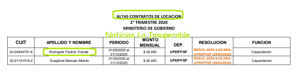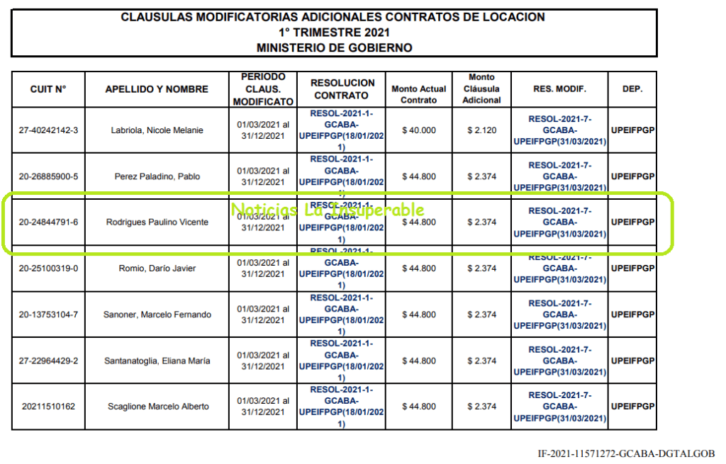 Y es que Paulino, según nos cuenta el informe de las cláusulas modificatorias del primer trimestre de este 2021, tiene un Contrato de Locación con la UPEIFPGP, el Instituto de Formación Política y Gestión Pública, donde se brinda formación, capacitación y actualización profesional, entre otros, a dirigentes políticos y funcionarios de gobierno.