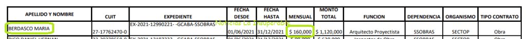 Por eso con fecha 8 de junio se firmó la RESOLUCIÓN N.° 343/SECTOP/21 mediante la cual María Esther Berdasco pasa a realizar tareas bajo la modalidad de locación de obra en áreas de la Secretaría de Transporte y Obras Públicas de la Jefatura de Gabinete de Ministros.