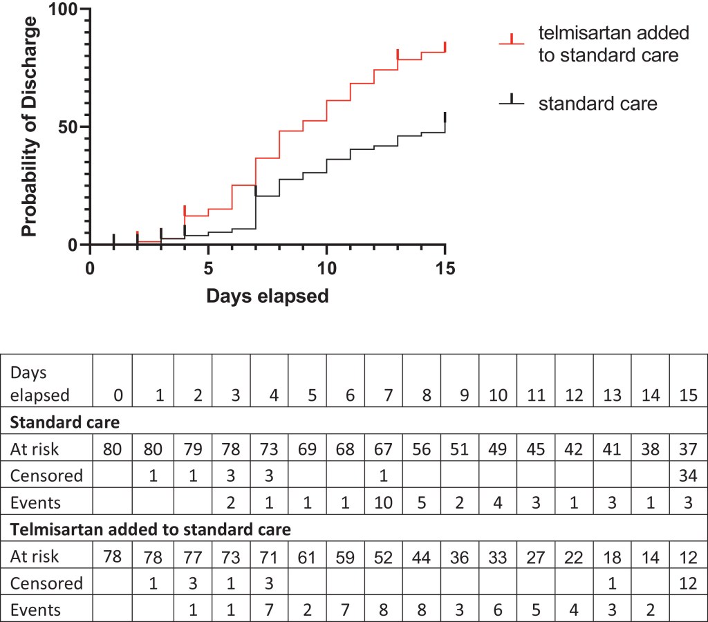 Para el día 5 ya se habían reducido los niveles de inflamación en el grupo tratado con telmisartan, y para el día 8 la reducción ya era mayor. Pero, lo más promisorio fue que, entre quienes recibieron la droga, el tiempo de internación se redujo a 9 días, frente a los 15 o más del grupo de control. A la vez, se redujo la necesidad de oxígeno, y las probabilidades de fallecimiento cayeron en un 81 por ciento.