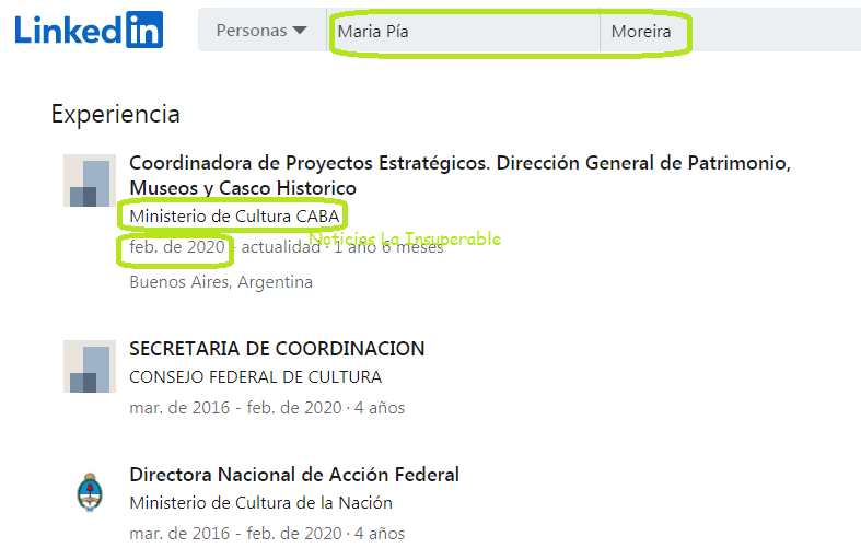Y que mejor prueba para demostrar que Ceferino mentía, que el propio Linkedin de su mujer que muestra que ingresó en el gobierno porteño en febrero de 2020. Dos meses después, Ceferino Reato juraba que no trabajaba para el Estado.