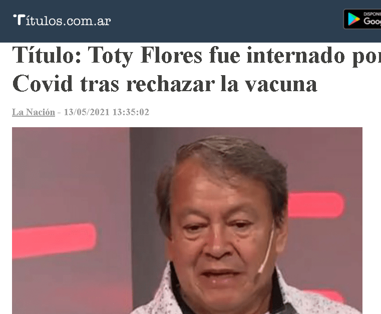 A la cabeza tenemos al lamebotas de Carrió, Héctor “Toty” Flores, que de tanto escuchar a su Jefa terminó creyéndole que vacunarse estaba mal y casi se nos muere hace poquito. Un lindo ejemplo para estas épocas de pandemia.