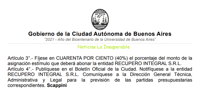 Por si fuera poco, el “generoso” Scappini le indica a la empresa que solo paguen el 40% de la “asignación estímulo” de diez mil pesos, que los porteños se harán cargo del 60% restante.